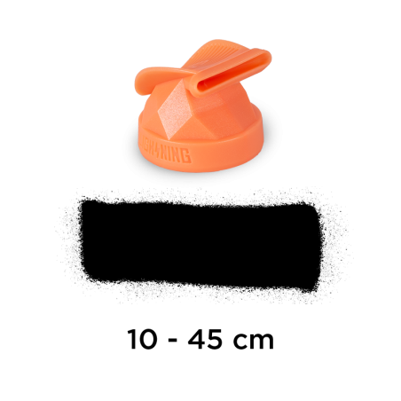 La Lightning Cap Orange de Night Quill est une buse ultra-large conçue pour les artistes qui cherchent à couvrir de vastes surfaces rapidement. Grâce à son jet puissant et à son design ergonomique, elle permet un tracé fluide allant de 10 à 45 cm de largeur, voire plus selon la pression de la bombe. Elle est idéale pour le graffiti de grande échelle, les remplissages rapides ou les effets spectaculaires.