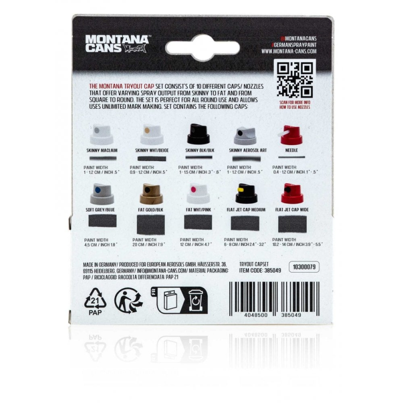 Découvrez et testez toutes les sensations du graffiti avec le set d’embouts “Tryout Cap Set” de Montana Cans.