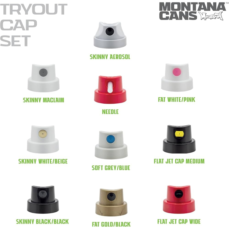 👉 Ajoutez dès maintenant le Montana Cans Tryout Cap Set à votre panier et explorez toutes les possibilités offertes par vos bombes de peinture !