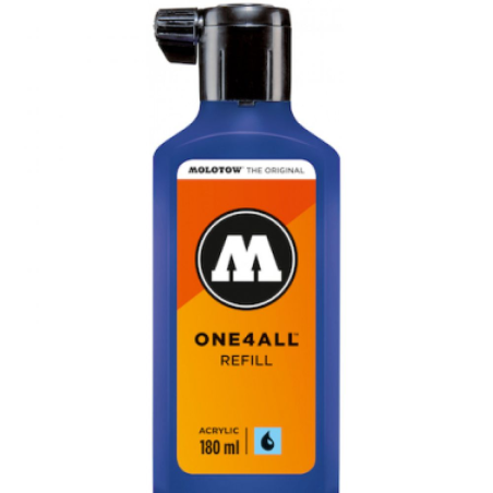 L'encre acrylique Molotow ONE4ALL est une peinture hybride de haute qualité à base d'eau et d'acrylique, conçue pour offrir une pigmentation intense, une couvrance exceptionnelle et une polyvalence inégalée. Conditionnée en flacon de 180 ml, elle est idéale pour les recharges de marqueurs ou une application directe au pinceau, à l’aérographe ou à la spatule.