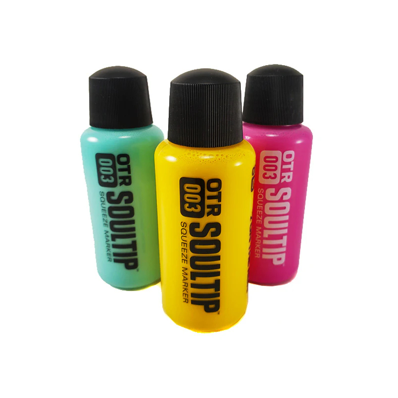 La OTR.003 Soultip Paint est une peinture fluide et ultra pigmentée, spécialement formulée pour les marqueurs squeezer (tampon) comme le Soultip Squeeze Marker de OTR. Conçue pour une utilisation urbaine et des marquages durables, elle est idéale pour les tags, les drips massifs et les créations expressives sur de multiples surfaces.